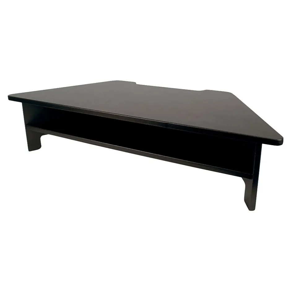 Raise monitors up to an ergonomic height with this monitor stand. Four non-slip rubber feet hold this stand securely in place and an optional height extender ensures a comfortable reach for users. This Victor monitor stand features a convenient shelf for storing documents or supplies, keeping spaces organized.
