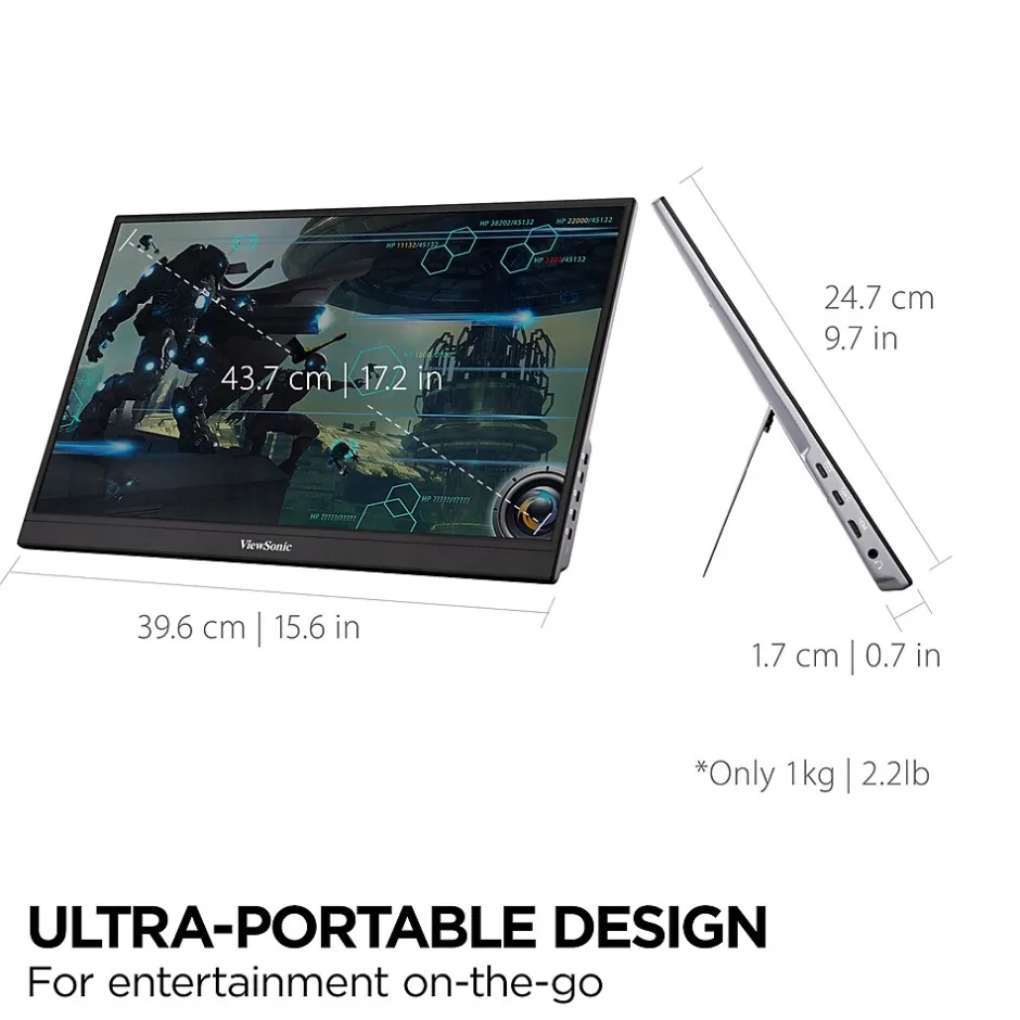 - SMALL AND COMPACT: With a weight of 2 lbs. and a thickness of 0.6 in, this 17.2 inch portable monitor slips easily into backpacks