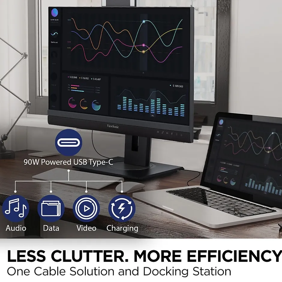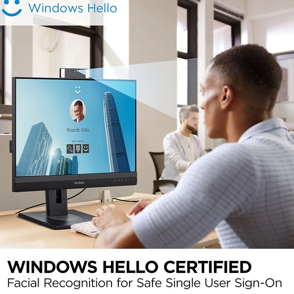 ViewSonic VG2757V-2K video conferencing monitor is a docking monitor with premium features such as a pop-up webcam that will help maintain productive meetings whether in the office or working from home, with secure features like a Windows Hello compatible IR camera and Zoom certification for peace of mind on security and reliable conferencing. Premium webcam features to improve visual and audio aspects of video calls such as built in LED lighting, and powerful speakers, along with a QHD 2560 x 1440p resolution for stunning visuals. The IR camera allows for secure and easy sign-on with Windows Hello. Full docking functionality (daisy chain, USB-C single cable connectivity with 90W power delivery, reliable ethernet connectivity) simplifies accessories needed to deploy for IT infrastructure.