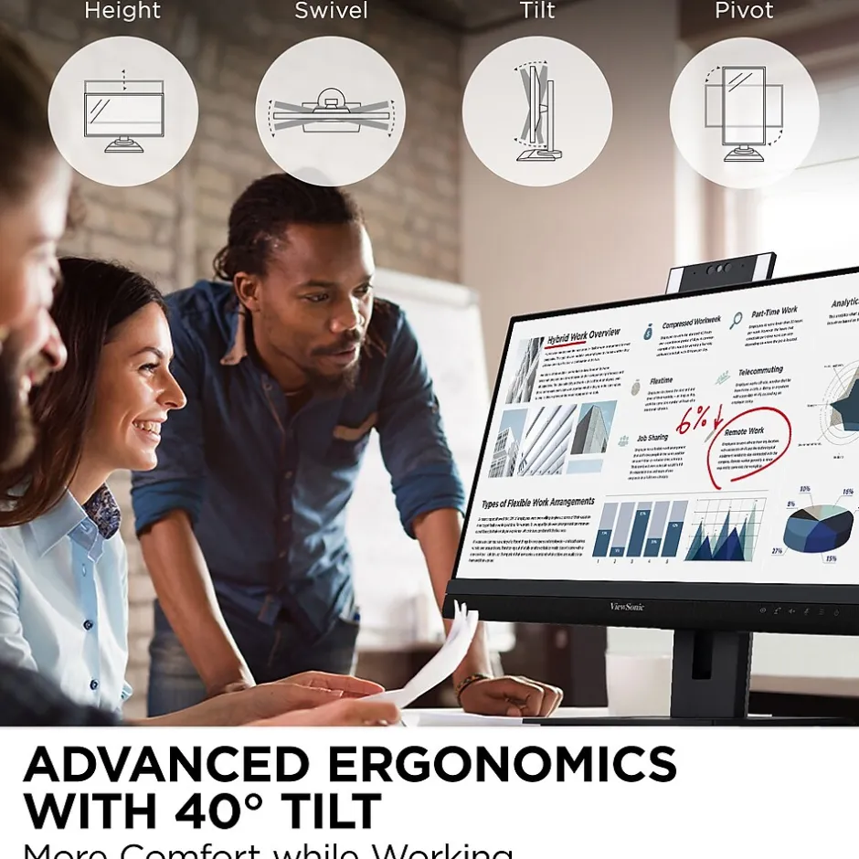 - ERGONOMIC STAND: Advanced ergonomics (40-degree tilt, swivel, rotate and height) for all-day comfort