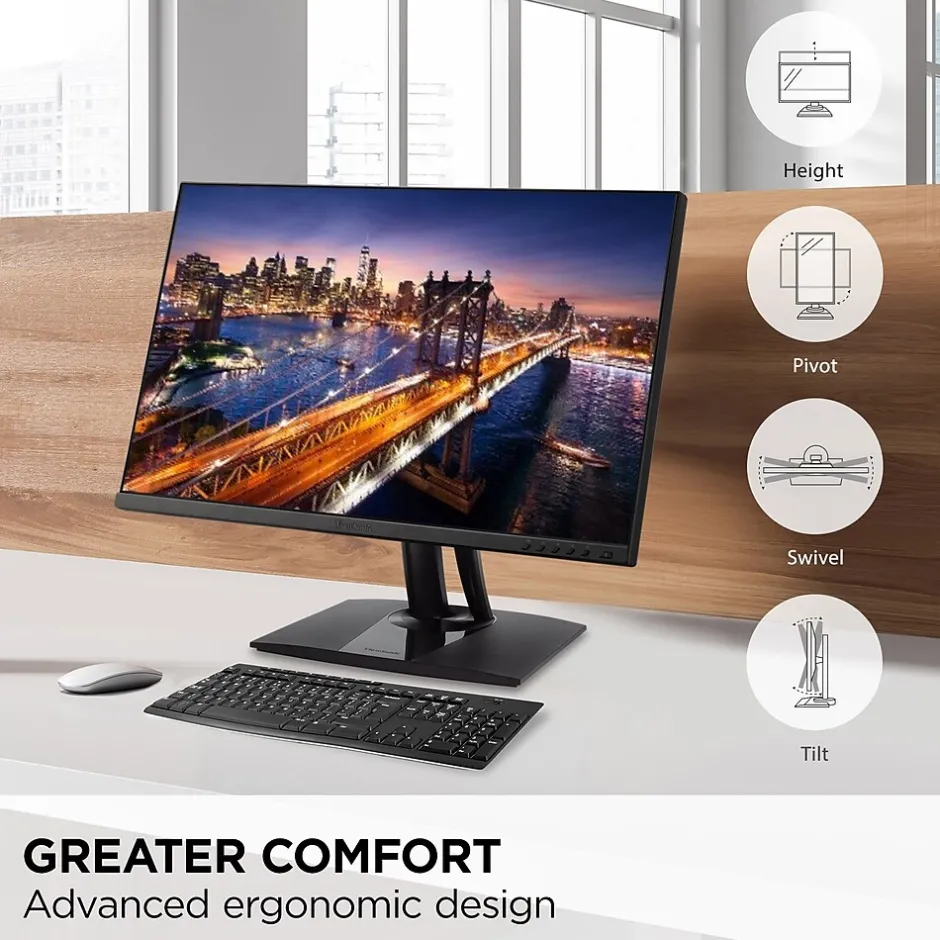 - ERGONOMIC STAND: Advanced ergonomics (tilt, swivel, rotate and height) for all-day comfort
