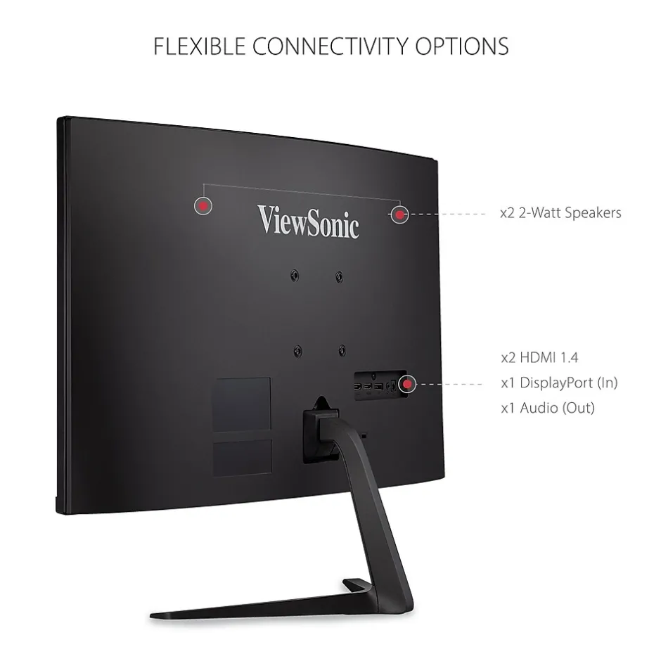 With an immersive 1500R curved screen and Full HD 1080p resolution, the ViewSonic VX2718-PC-MHD monitor provides an incredible viewing experience for work or play. With features including a high 180Hz refresh rate, 1ms (MPRT) response time and FreeSync Premium technology, this monitor virtually eliminates screen tearing and stuttering for a fluid gaming experience. The VX2718-PC-MHD also comes equipped with ViewSonic exclusive ViewModeâ„¢ presets, which offer optimized screen performance for different home entertainment applications such as watching movies, editing files, or playing video games. Two HDMI (v1.4) inputs, and one DisplayPort (v1.4) input offers flexible connectivity for both general use and entertainment.