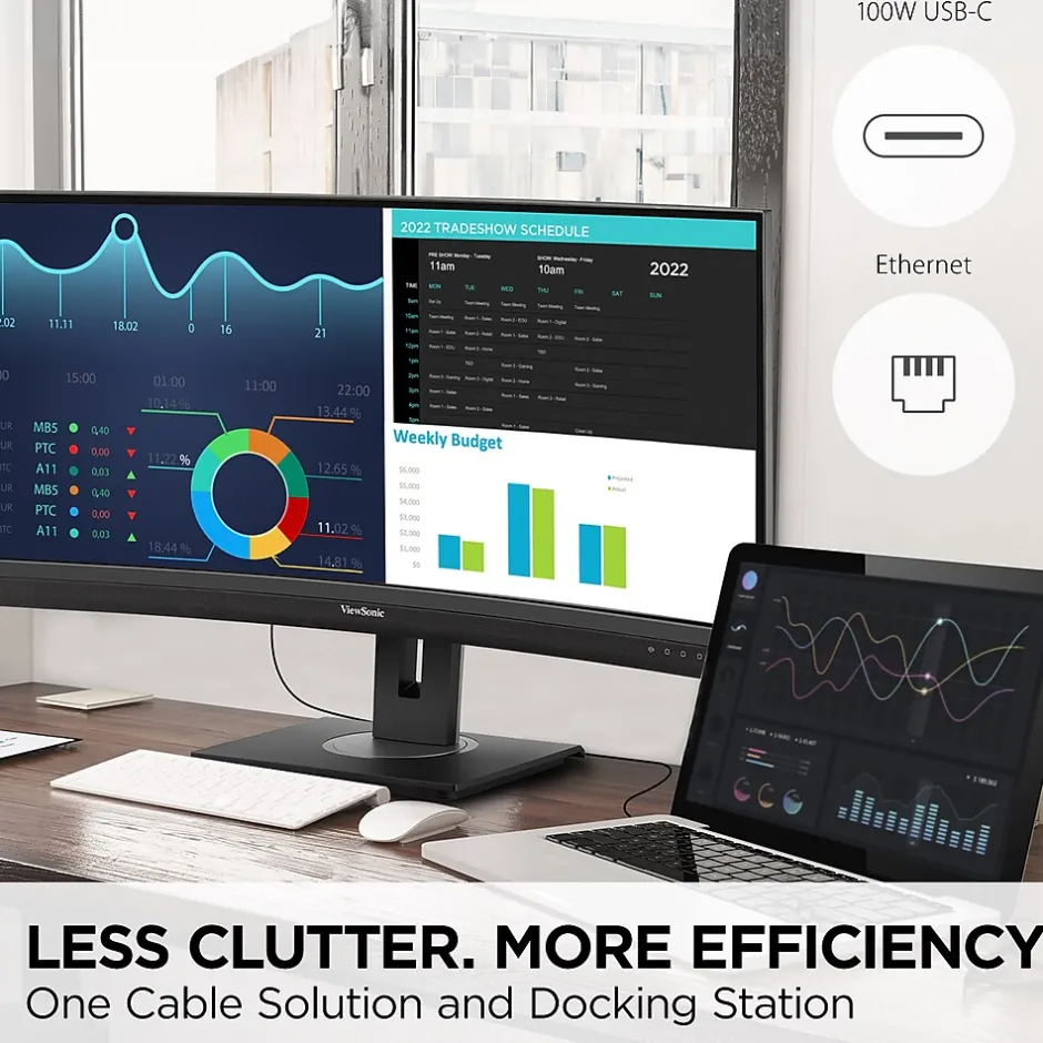 - FLEXIBLE CONNECTIVITY: The VG3456C supports PC, Mac and more with USB-C, RJ45, HDMI, DisplayPort, USB inputs