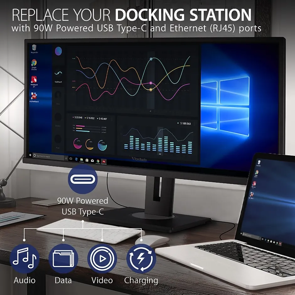 - FLEXIBLE CONNECTIVITY: The VG3456 supports PC, Mac and more with USB-C, RJ45, HDMI, DisplayPort, USB inputs