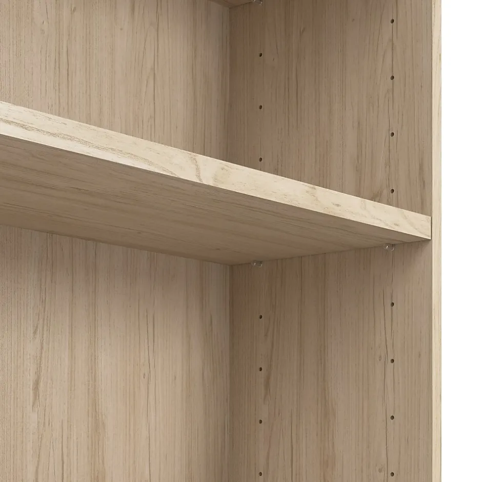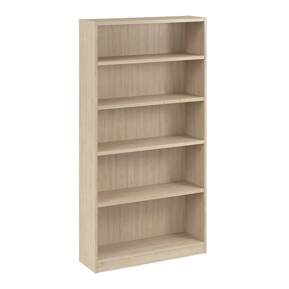 The Bush Business Furniture Vista Tall 5 Shelf Bookcase keeps any office or workspace organized and clutter-free, adding a modern touch and extra storage where it’s needed. Three adjustable shelves move up and down while two fixed shelves offer added stability and provide extra storage. The sturdy 1-inch thick shelves have a weight capacity of 50 pounds each, so storing paperback and hardcover books, vinyl records, DVDs or video games is never a problem. Wall attachment hardware is included for family-friendly safety and security in a home office or living room. Available in your choice of contemporary finishes. This tall 5 tier bookshelf has been meticulously tested to meet or exceed ANSI/BIFMA quality standards for safety and performance and is backed by the Bush Furniture 10 Year Manufacturer’s Warranty.