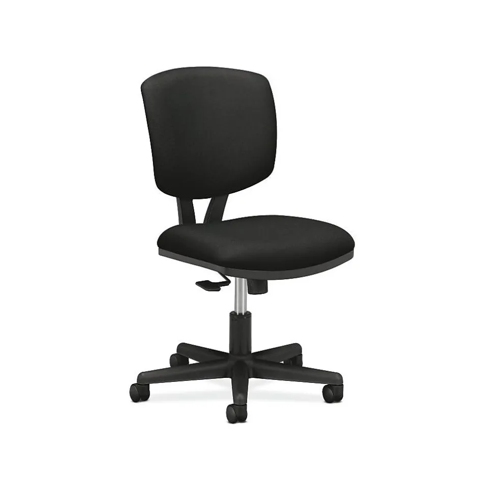 Roll right up to your desk in this HON Volt Synchro-Tilt task chair, which features a five-star base and rolling casters for effortless mobility. The contoured seat and back offer all-over comfort, while the unique design is created with users big and small in mind. An armless setup makes this chair easy to slide in and out of, so you can quickly get up to greet customers or clients. Featuring pneumatic seat height adjustment, this chair can be configured to meet the height of your desk. The Synchro-tilt mechanism promotes proper alignment while you recline, so you can take a relaxing break in between tasks. This HON Volt Synchro-Tilt task chair comes with an upright tilt lock function to keep you sitting at full attention when there’s important work to be done.