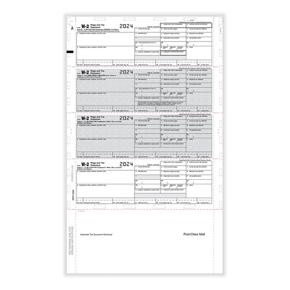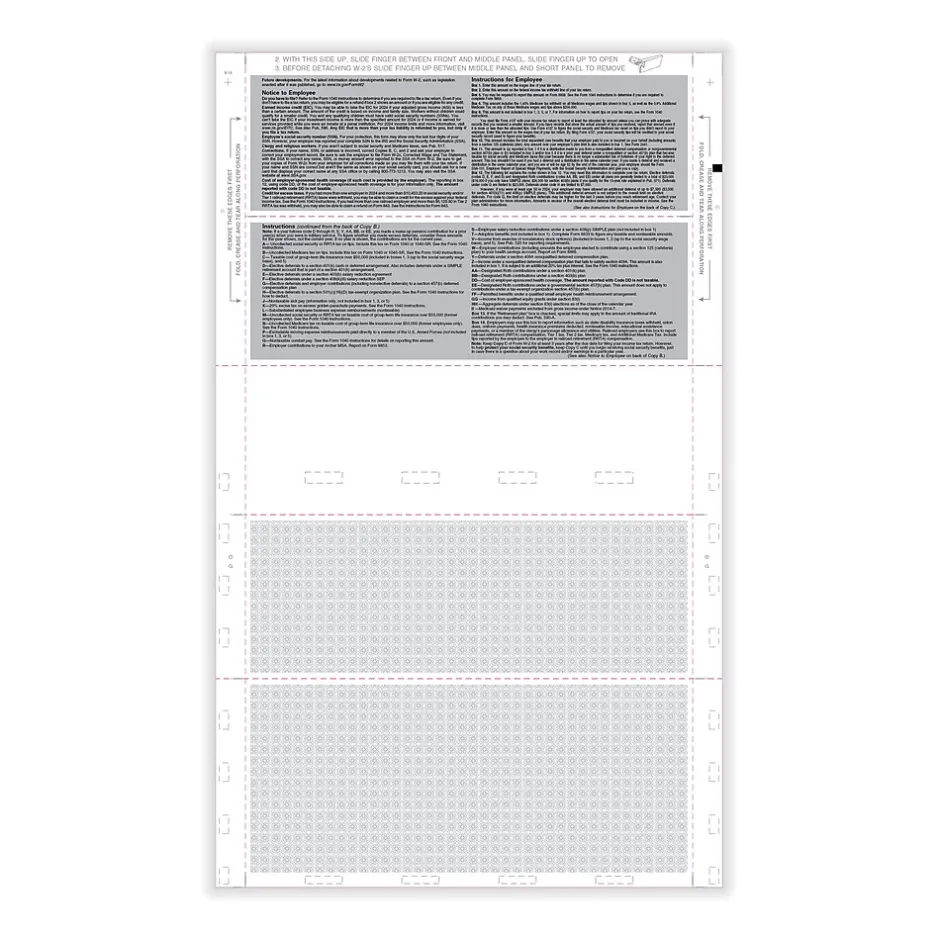 Use W-2 pressure seal forms to easily print and mail a large volume of employee W-2 forms. Blank 4-Up horizontal W-2 pressure seal form. One employee per page. Eccentric Z fold allows you to print check and mailing information on the same side, no need to duplex.