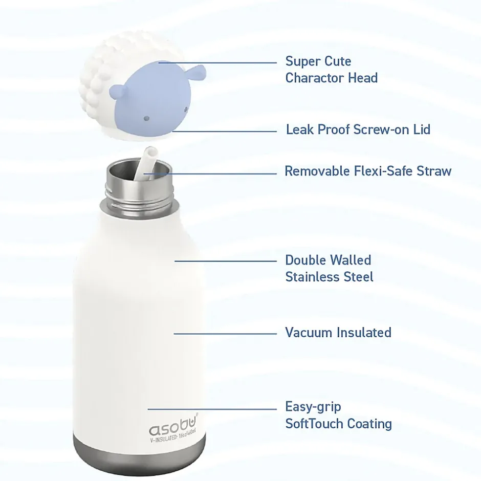 On the hunt for a fun and functional water bottle for your little one? The ASOBU Sheep Bestie Bottle is an adorable stainless steel kids water bottle with a soft head on the lid! This 16-oz. bottle is easy for those little hands to hold and is 100% spillproof, making it ideal for adventures! With the included flexible reusable straw drinking will be fun and games!