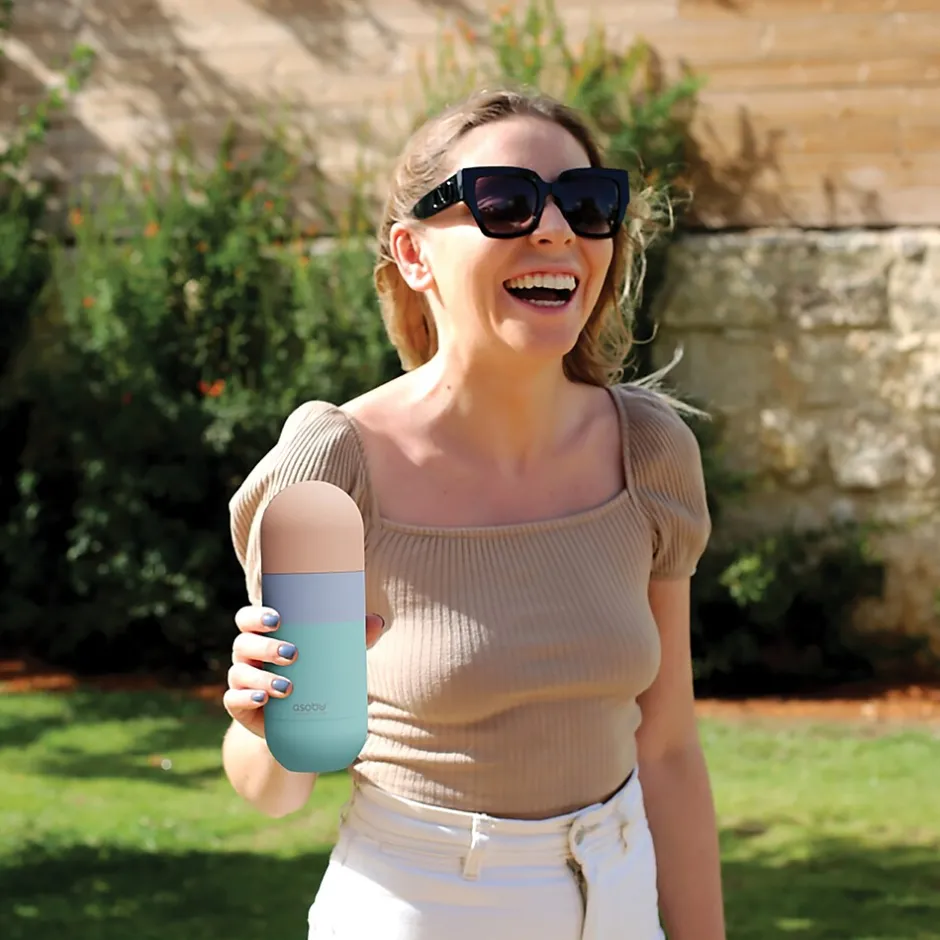 The ASOBU Pastel Mint 14-Oz. Orb Water Bottle is made of double-wall, vacuum-insulated, copper-lined stainless steel construction so it will keep your drinks hot or cold for hours. The ergonomic easy-grip shape makes it an ideal travel companion. And its stunning look sets you apart from the crowd of standard insulated bottles on the market today. The Orb bottle comes with a soft-touch exterior while the lid can be used as a handy cup for serving a small portion when preferred. Make a unique fashion statement today and the next time you are out and about during your busy day or evening with the Orb water bottle.