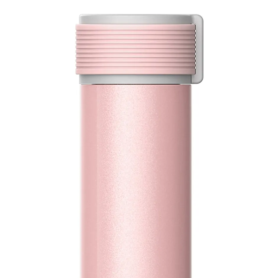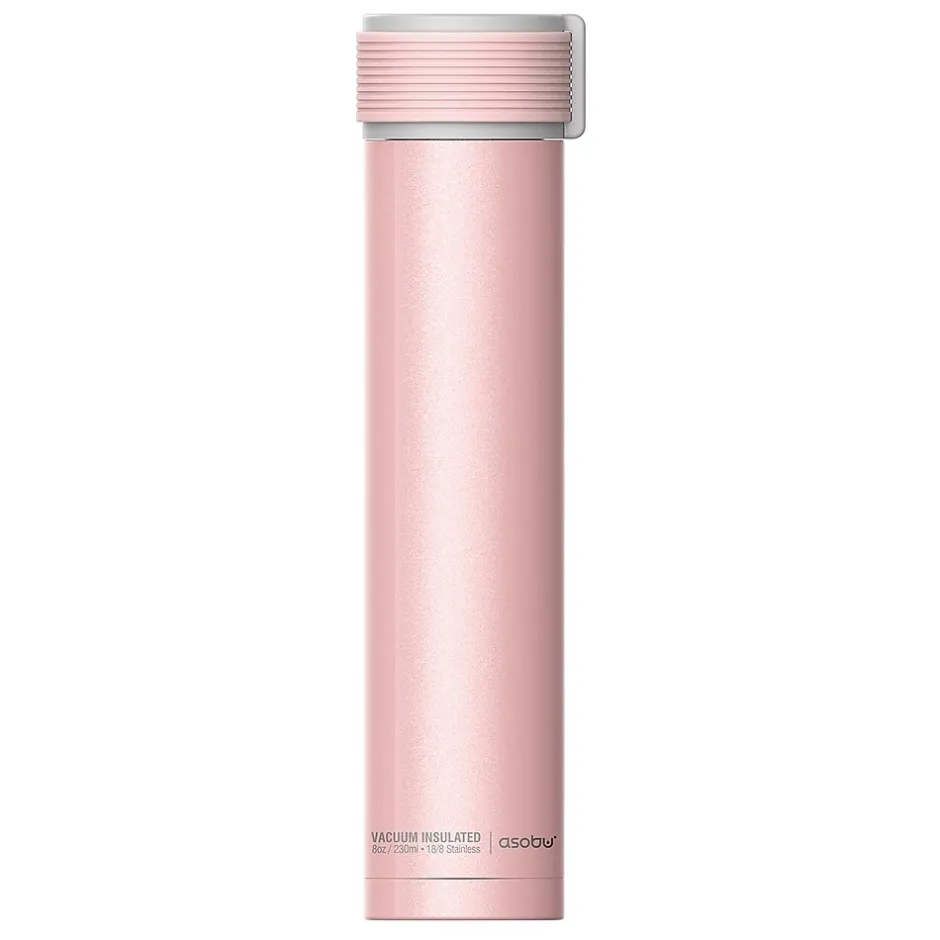 This fashion-forward Pink ASOBU 8 Oz. Skinny Mini Ultimate Lady Flask is the ideal bottle to carry for on the go! This bottle keeps liquids cold up to 12 hours and hot up to 4 hours. The silicone top band flips over and can be used as a carry strap. The Skinny Mini is a great, fun way to keep water (or other drinkables) with you no matter where you go.