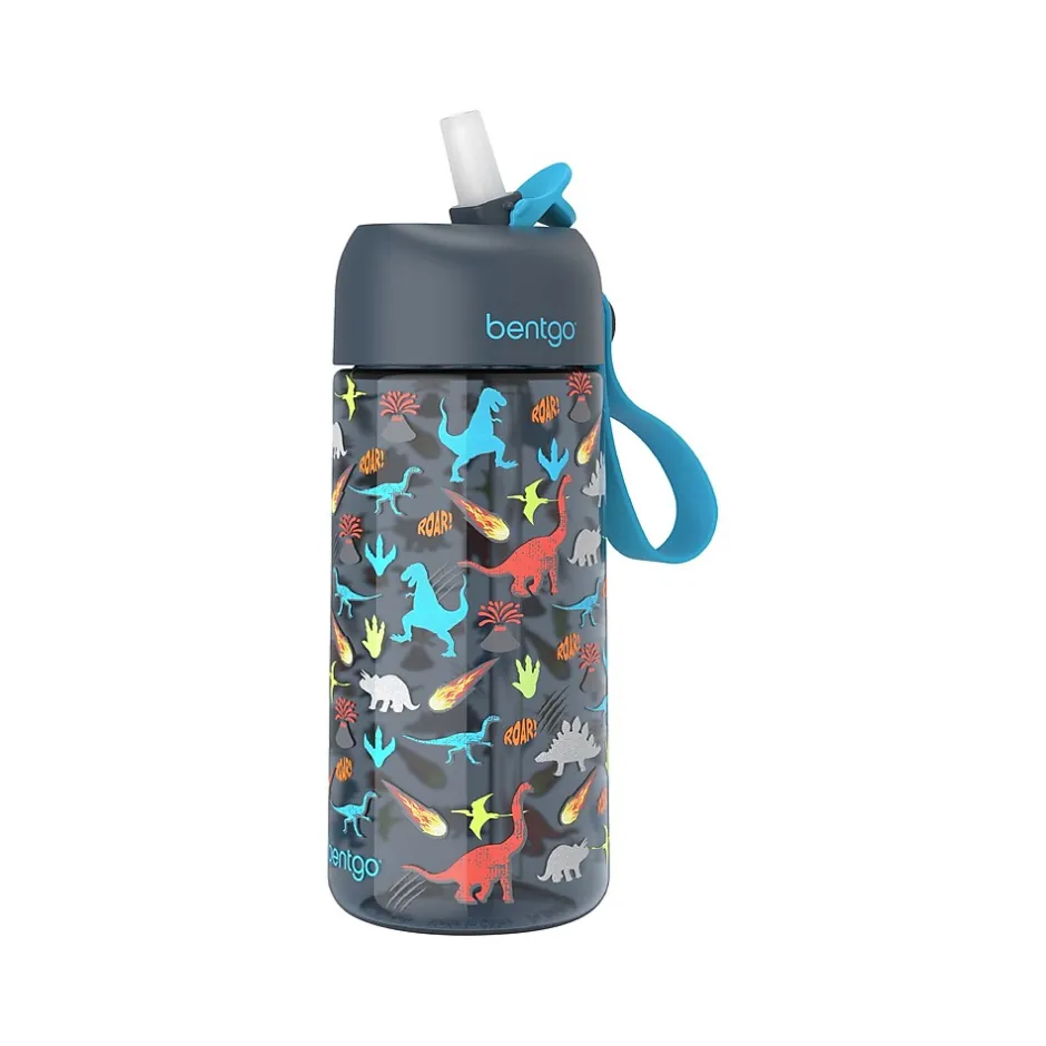 Enjoy staying hydrated on the go with the bentgo Kids water bottle. A perfect complement to any bentgo Kids lunchbox, the leakproof water bottle was designed with safety and portability in mind. The kid-friendly safe-sip straw features an anti-choke bite valve that makes it easy for children to use while at school or at home. The leakproof lid seals the water bottle, ensuring no surprise spills will happen. The bentgo Kids water bottle comes in four adorable designs that will match the unique personality of a girl or boy. In addition to the outstanding design, the water bottle is dishwasher-safe (top rack) and is backed by a 2-year warranty.