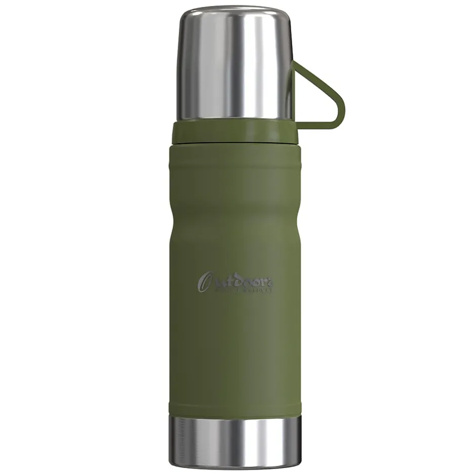 The Outdoors Professional Green Termo Classic Vacuum Bottle is made with superior insulation that keeps liquids (soup, coffee, tea) hot for up to 24 hours or cold drinks cool for up to 24 hours. Add ice to your favorite beverage and the Termo classic will keep it cold for up to 5 days. The rustproof stainless steel construction means it can work just as hard as you do without impacting its performance. This is an ideal bottle to throw in your truck, work bag, or travel with it. It’s made with BPA-free materials, keeping its contents safe to consume. This bottle features a leak-resistant lid, so you can put it in your backpack without worrying about any spills. The wide mouth opening helps with easy pouring into the lid that doubles as a cup. The collapsible handle makes it easy to transport when you’re on the go.