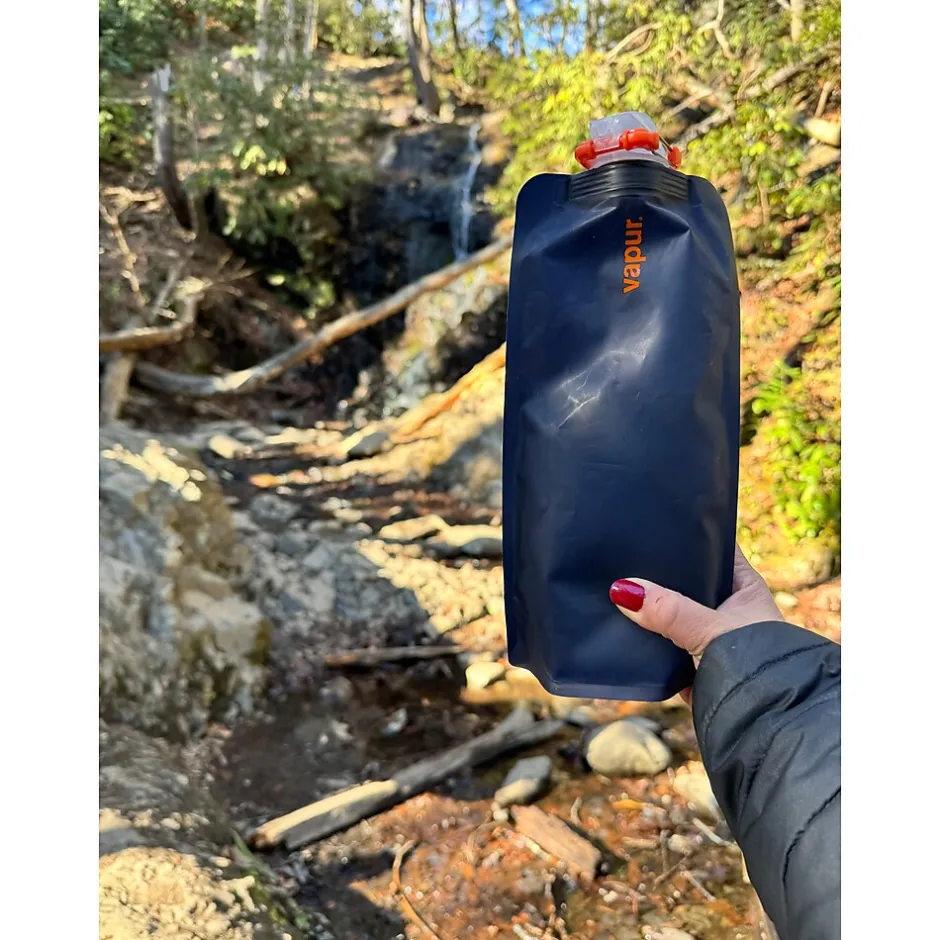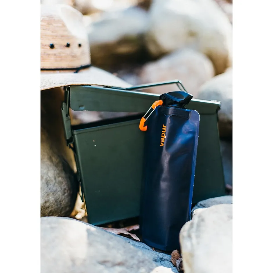 The Vapur Anti Bottle is BPA free and stands when full and folds when empty. The bottle is dishwasher safe and can be attached to any active gear through the integrated carbiner on the cap. It is the perfect companion for your next adventure, wether hiking in the mountains, camping, kyaking or simply taking the family on that special vacation, hydrate anywhere and everywhere!