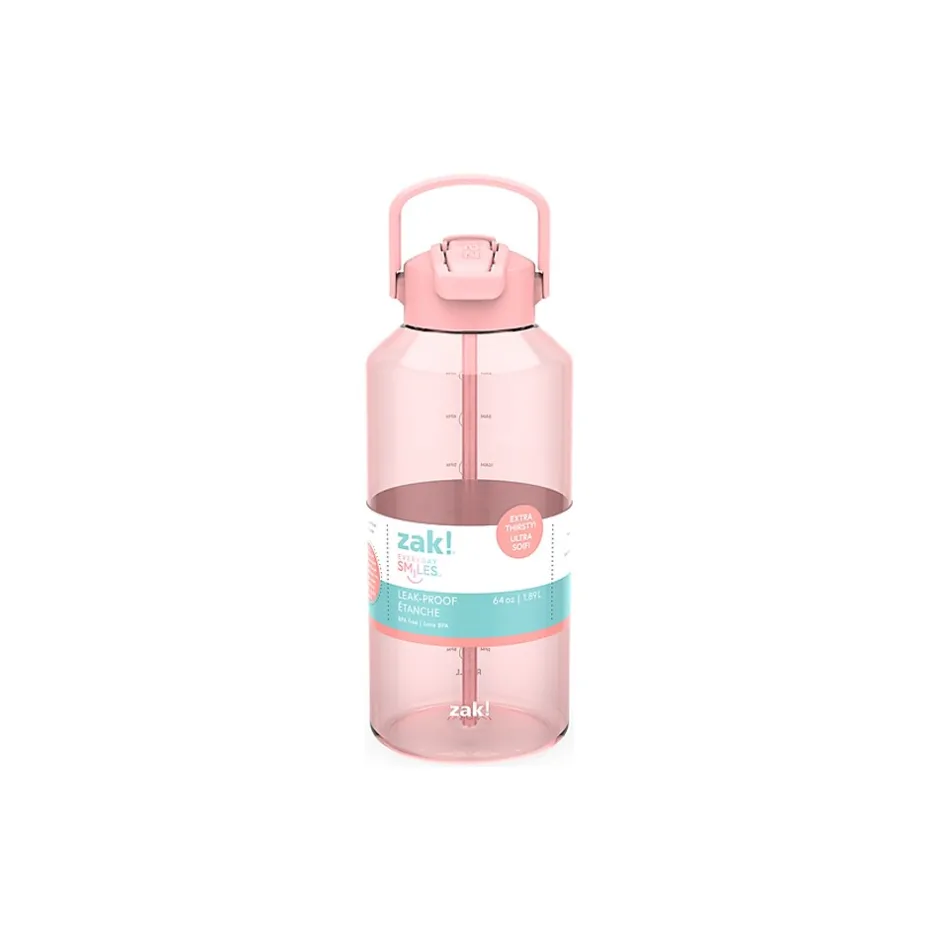 With a capacity of 64 oz., this Zak! Liberty large water bottle holds plenty of water to keep you hydrated all day long. The wide opening leaves plenty of room to add ice, and the fun measurement markings give plenty of encouragement for you to meet your hydration goals. The screw-on lid has a flip-up spout that keeps water easy to access but doesn’t leak when it’s closed, and a built-in carry handle makes this water bottle easy to bring around in your everyday activities. Made of plastic, the bottle is lightweight and durable, as well as completely BPA-free, and should be washed by hand.