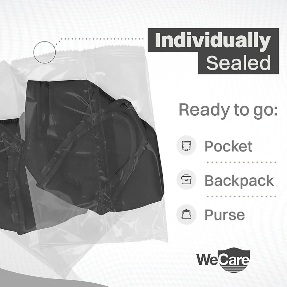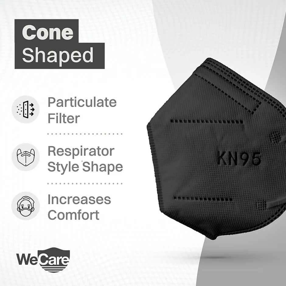 These Protective Disposable Face Masks by WECARE are comfortable, breathable, foldable. The cone shaped masks offer 5-Ply protection. These Protective Disposable Face Masks by WECARE are comfortable, breathable, foldable. The cone shaped masks offer 5-Ply protection. The elastic fabric completely fits the face. Inner layer with soft materials contacts your face for comfortable using experience. Very effective and quick to wear and put off: Flexible and easy to shape bridge to easily fit on the nose with a minimum gap.Suitable for different face shapes of men and women. Each mask is individually packaged from the manufacturer for added protection and sanitary use. Non Reusable, and not for Medical use.