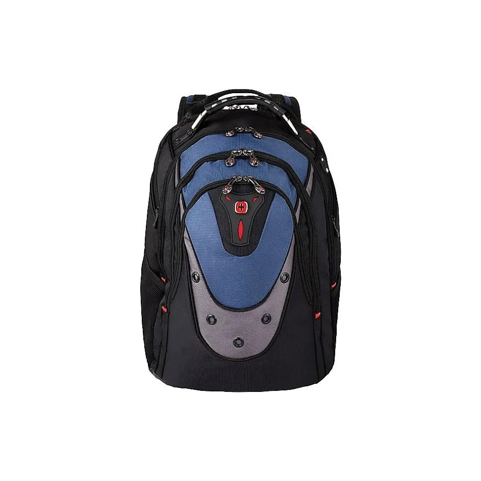 Keep all belongings in one place with this laptop backpack. The main compartment can handle a 17-inch laptop easily, making it easy to take on business trips, and a separate iPod or MP3 player compartment let you listen to music or a favorite podcast on the move. Store a change of clothes in the second compartment, or place school or study essentials such as notebooks, pens, and paper. The air-flow back padding feature makes it easy to stay cool while traveling on foot and letting the body to breathe. Durable shock-absorbing shoulder straps on this Wenger backpack make it an ideal choice for off-road adventures and camping.