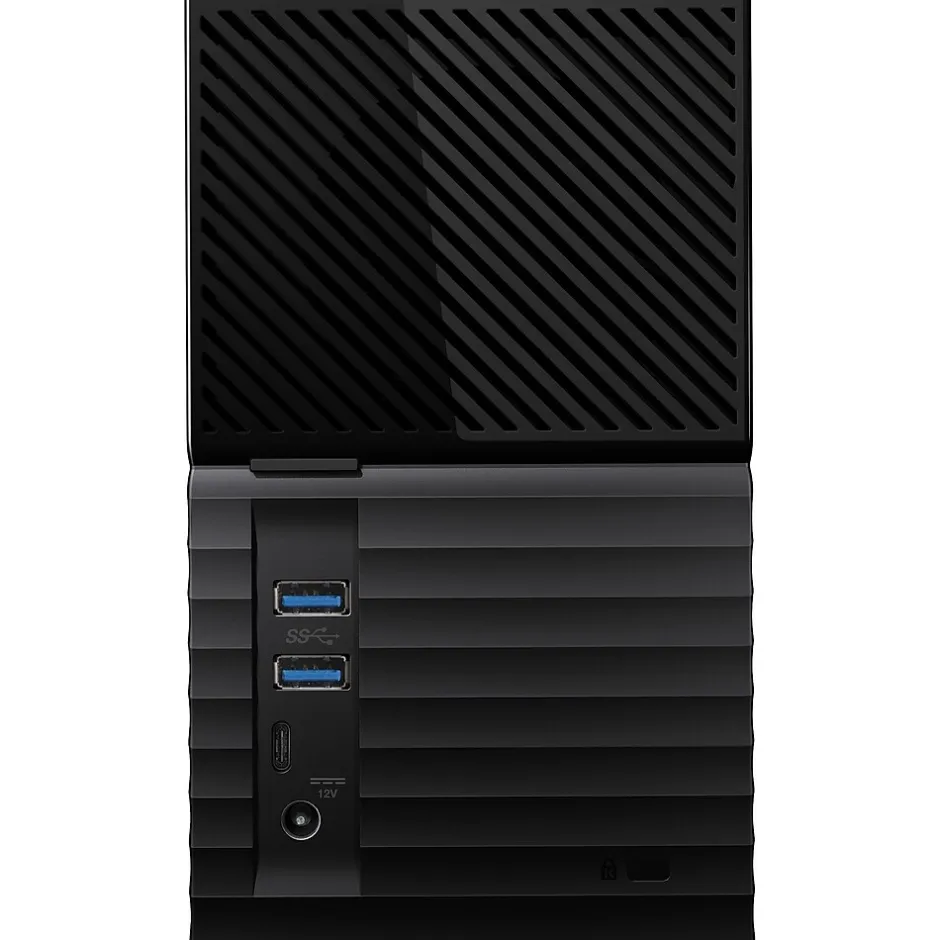 Massive Capacity: The My Book™ Duo drive has up to 20TB1 capacity with a single cable. Free up valuable space on all your computers. Store and back up your photo, video and music collections, and important documents in one reliable place. RAID 0 Ready Out of the Box: Ready to perform at maximum speed and capacity in default mode, RAID-0. Reconfigure the drive to RAID-1 for redundancy (data mirroring), or use it as two independent drives (JBOD) with the included WD Drive Utilities™ software. RAID Optimized WD Red™ Drives: The My Book™ Duo drive comes with RAID-optimized WD Red™ drives inside to deliver high-speed, quality storage to rely on. RAID-optimized firmware is perfect for two-disk array systems with auto management of drive operations to help ensure read/write cycle data integrity. USB 3.1 Gen 1-Ready, USB 3.0 Compatibility: Compatible with USB 3.1 Gen 1 and USB 3.0, the My Book™ Duo drive works to deliver high-speed connectivity no matter the interface. Includes both USB Type-C™ to Type-C and Type-C to Type-A cables. USB 3.0 Hub Ports: The My Book™ Duo drive can serve as a quasi-docking station with 2x USB 3.0 Type-A hub ports for accessories, including additional storage, keyboard and mouse, card readers, USBs, or phone sync and charge. 256-bit AES Hardware Encryption and Password Protection: The My Book™ Duo drive comes with 256-bit AES Hardware Encryption with WD Security™ software built in to help keep private content secure. Set a personalized password to activate hardware encryption and data protection.
