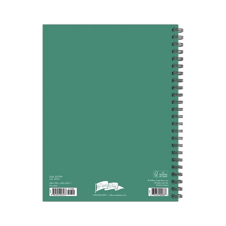 This Willow Creek Succulents softcover weekly and monthly planner combines fashion with fun, functional features that are great for laying out the year ahead. In addition to monthly snapshots and two-page weekly spreads that provide ample space for detailed planning, there are also sections for weekly shopping lists, goals, and a habit tracker. This is a perfect inspirational gift that is the perfect size for school, office, handbag, or backpack. At Willow Creek, they are committed to eco-friendly efforts to make their products more sustainable, which is why Willow Creek planners are printed with soy-based inks on high-quality FSC certified paper. This planner includes a spiral binding, monthly color-coded faux tabs that make accessing information a breeze, and over 300 stickers to dress up special days like birthdays and other upcoming events on your social calendar. Additional features include weekly checklists and habit tracker, and additional notes pages in the back. Also includes moon phases (CST) and standard US and international holidays. Protected by a durable plastic-free cover, this planner also includes a handy storage pocket offering a secure space for papers, receipts, and other important items.