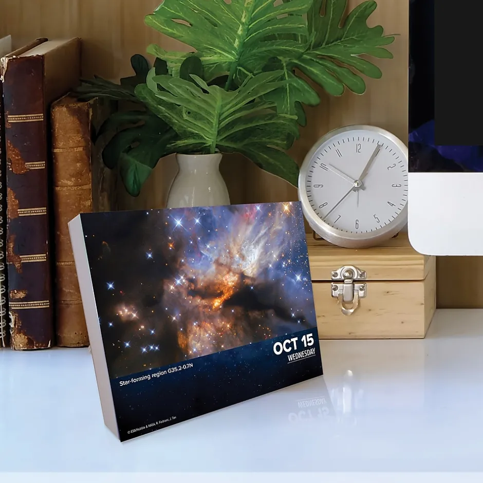 The Willow Creek Astronomy 2025 6.2″ x 5.4″ daily box calendar is a great addition to any home or workspace. Its small size allows for easy placement, and its content, filled with motivational quotes and funny material, is a great way to inject some fun and personality. Marvel in the magnificence of our solar system. From distant galaxies sprinkled with supernova remnants to Technicolor nebulas swirling across the cosmos, this daily calendar will inspire you to look beyond the world we know and stoke your curiosity for the far-flung regions of outer space. Enjoy something new each day for the entire year, and make your desk the talk of the office.