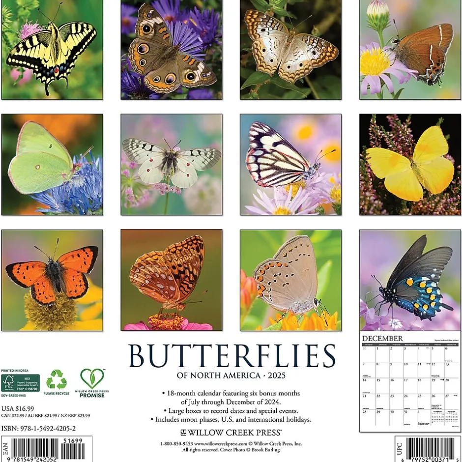 The butterfly is a flying flower, it’s said, and “the flower a tethered butterfly.” You’ll enjoy butterflies and flowers galore in these 12 dazzling photographs of North American butterflies. Stay organized in the upcoming year with the Willow Creek Butterflies 2025 wall calendar featuring large grids for easy notation of dates and events to help you stay efficient and on top of your commitments. Let this calendar guide you to a more organized, successful, and fulfilled year ahead.