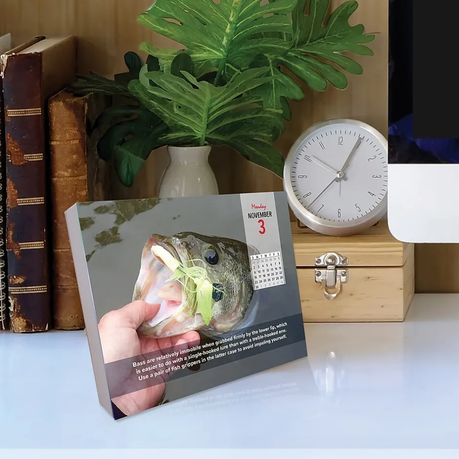 - Desktop calendar features new content daily; Page a Day Calendar for the desk/counter/shelf