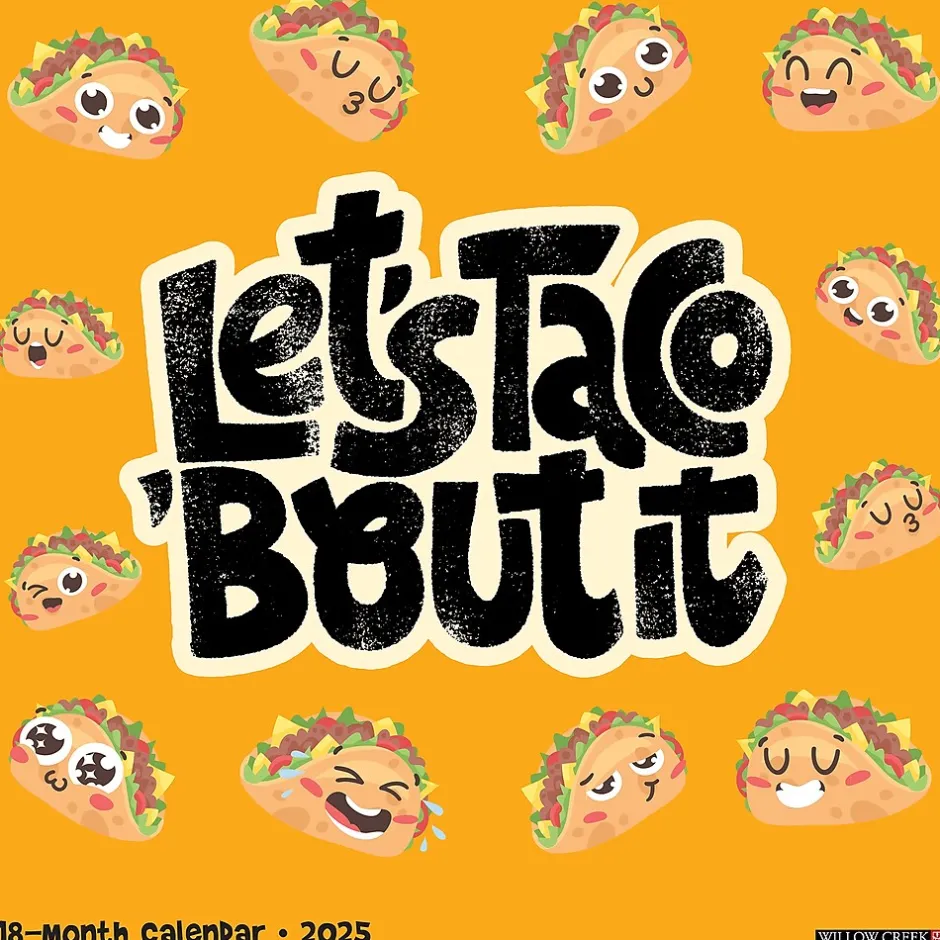 - THE PERFECT GIFT – Crunchy or corny, we can all agree that tacos and puns make everything better. The 2025 Let’s Taco ‘Bout It 12” x 12” Wall Calendar is the perfect gift for anyone looking to add zest to their wall.