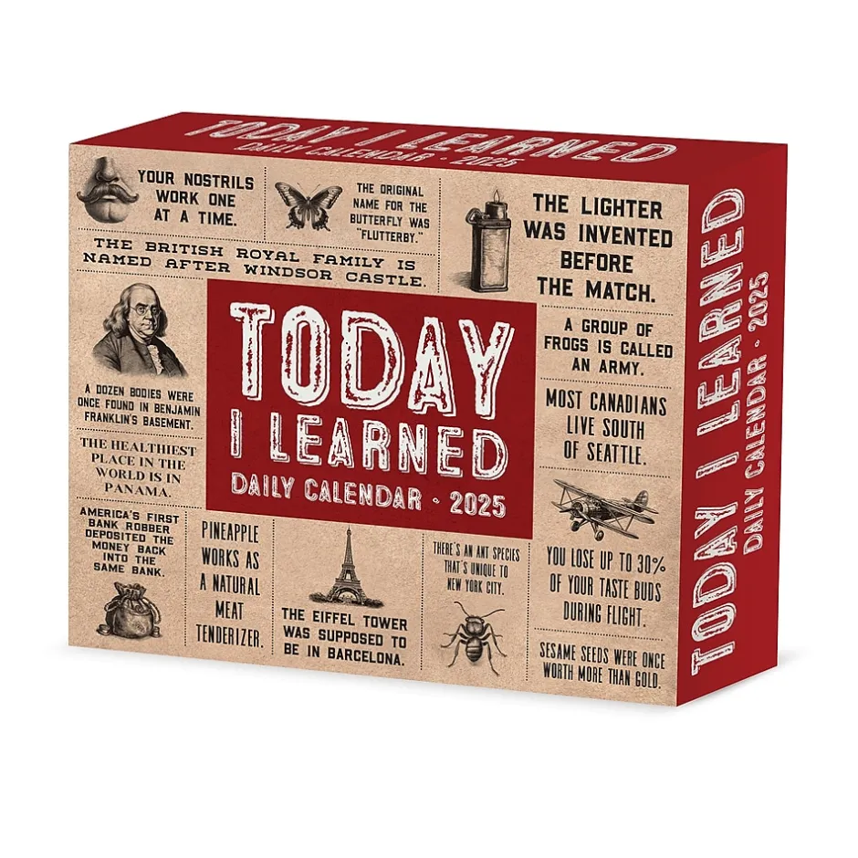 Add a little something special to each day with this Today I Learned – Trivia and Facts 2025 daily desktop / box calendar. Flip the page each day for a new full-color image to inspire. Perfect for the home or office, this calendar is designed to make your year special.