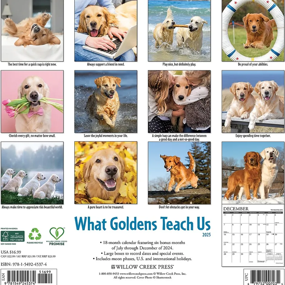 Willow Creek 2025 What Goldens Teach Us 12" x 12" Monthly Wall Calendar (45374) Hot