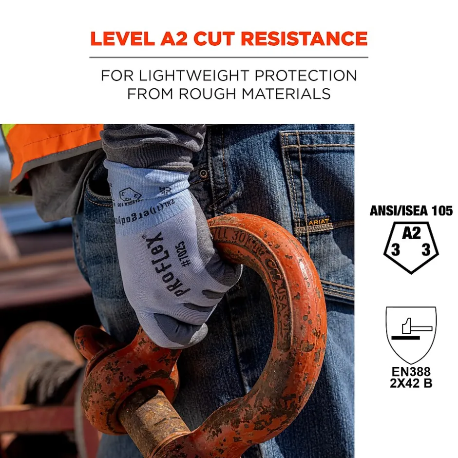 - CUT RESISTANT – ANSI A2 cut protection and level 3 abrasion resistance for protection when working with sharp materials