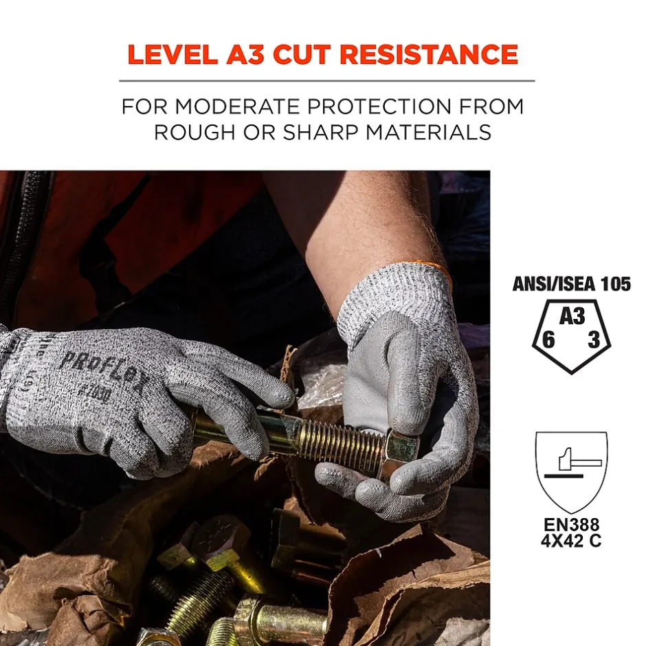 - TESTED & APPROVED – ANSI A3 cut resistant, EN388: 4X42C, ANSI level 6 abrasion resistant, ANSI level 3 puncture resistant