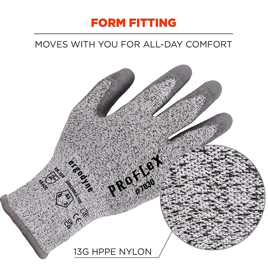 - COMFORTABLE FORM FIT – 13-gauge seamless HPPE nylon-spandex knit with PU coating moves with you for all-day comfort and minimal hand fatigue