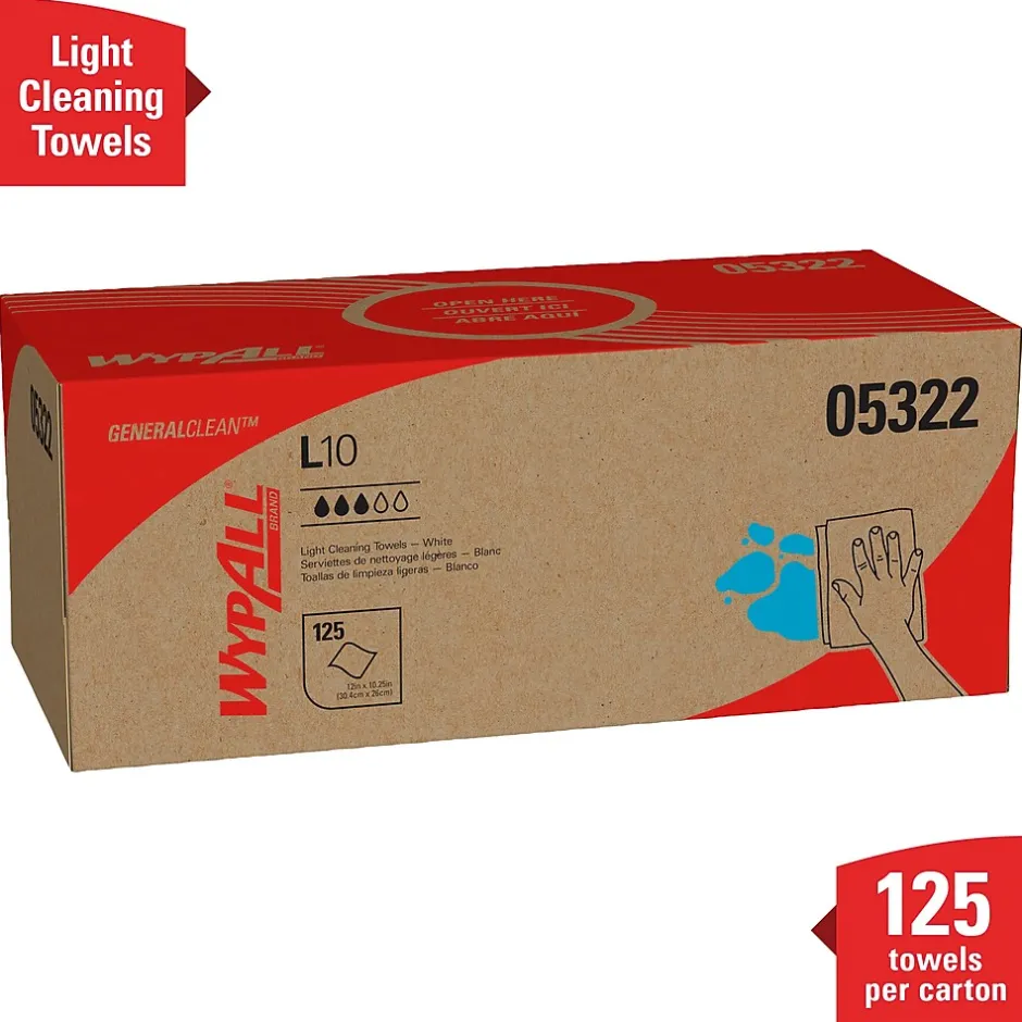 - 125 Sheets/Box; 18 Boxes of WypAll® GeneralClean™ L10 Light Cleaning Towels/Case; 2,250 Sheets/Case; White; Pop-Up Box; Limited Use Towels