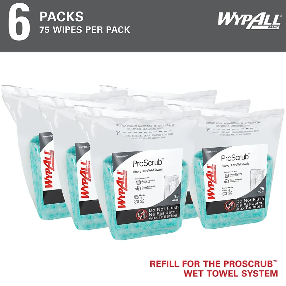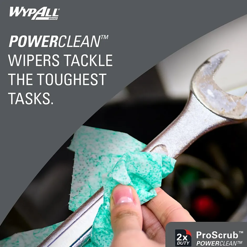 - 50 Sheets/Canister; 8 Canisters of WypAll® PowerClean™ ProScrub™ Heavy Duty Wet Towels/Case; 400 Sheets/Case; Green and White; Wipes & Free Canister; Dual Action Cleaning
