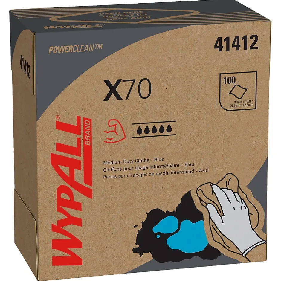 - 100 Sheets/Box; 10 Boxes of WypAll® PowerClean™ X70 Medium Duty Cloths/Case; 1000 Sheets/Case; Blue; Pop-Up Box, Blue Cloths; Long Lasting Towels